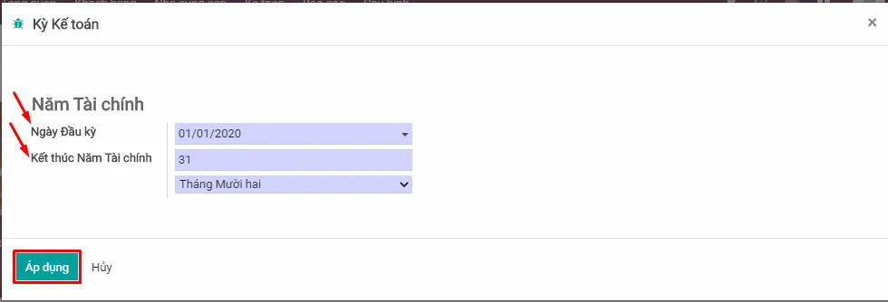 Ngày đầu kỳ: Ngày mà kế toán được quản lý bởi Odoo, nó là ngày của bút toán đầu kỳ được tạo (sẽ được giới thiệu tiếp theo dưới đây);